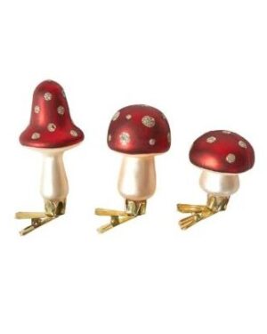 • 3 Svampe m. clips ass. farver H8cm glas